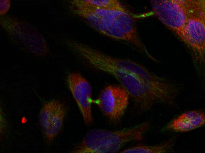Immunofluorescence staining of methanol-fixed Hela cells using MKK3(Ab-189) Antibody.