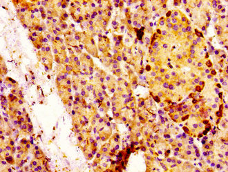 • IHC image of CSB-PA013426LA01HU diluted at 1:100 and staining in paraffin-embedded human pancreatic tissue performed on a Leica BondTM system. After dewaxing and hydration, antigen retrieval was mediated by high pressure in a citrate buffer (pH 6.0). Section was blocked with 10% normal goat serum 30min at RT. Then primary antibody (1% BSA) was incubated at 4°C overnight. The primary is detected by a biotinylated secondary antibody and visualized using an HRP conjugated SP system.