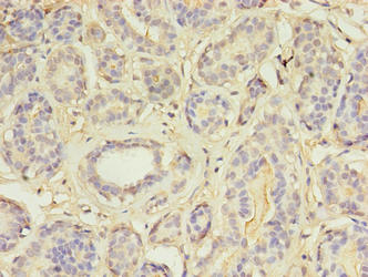 Immunohistochemistry of paraffin-embedded human breast cancer using CSB-PA349825HA01HU at dilution of 1:100