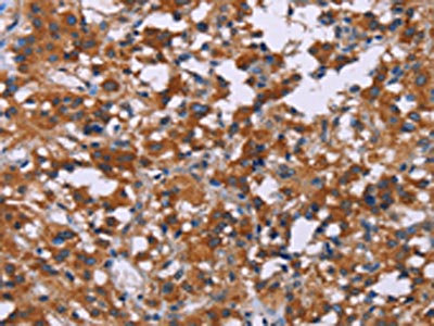 The image on the left is immunohistochemistry of paraffin-embedded Human brain tissue using CSB-PA152806(MAPK1/MAPK3 Antibody) at dilution 1/30, on the right is treated with synthetic peptide. (Original magnification: ×200)