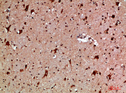 Immunohistochemical analysis of paraffin-embedded human-brain, antibody was diluted at 1:200