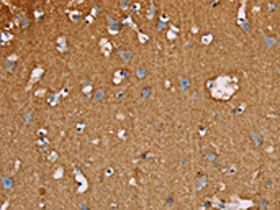 The image is immunohistochemistry of paraffin-embedded Human brain tissue using CSB-PA567465(MBNL3 Antibody) at dilution 1/20. (Original magnification: ×200)