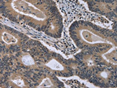 The image on the left is immunohistochemistry of paraffin-embedded Human colon cancer tissue using CSB-PA107336(MCM3AP Antibody) at dilution 1/30, on the right is treated with fusion protein. (Original magnification: ×200)