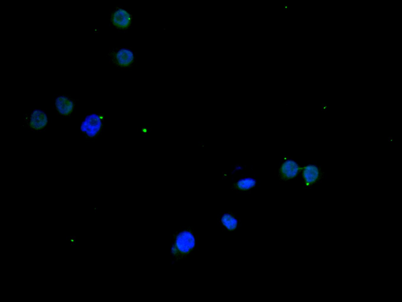 Immunofluorescence staining of MCF7 cell with 5% goat serum, counter-stained with DAPI. The cells were fixed in 4% formaldehyde and blocked in 10% normal Goat Serum. The cells were then incubated with the antibody overnight at 4C. The secondary antibody was Alexa Fluor 488-congugated AffiniPure Goat Anti-Rabbit IgG(H+L).