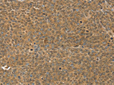 The image on the left is immunohistochemistry of paraffin-embedded Human ovarian cancer tissue using CSB-PA193960(MED15 Antibody) at dilution 1/30, on the right is treated with synthetic peptide. (Original magnification: ×200)