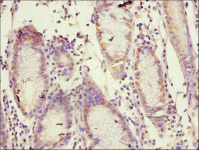 Immunohistochemistry of paraffin-embedded human gastric cancer using CSB-PA07019A0Rb at dilution of 1:100