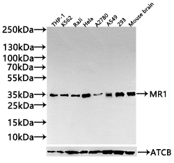 Positive WB detected in: THP-1 whole cell lysate(20μg), K562 whole cell lysate(20μg), Raji whole cell lysate(20μg), Hela whole cell lysate(20μg), A2780 whole cell lysate(20μg), A549 whole cell lysate(20μg),293 whole cell lysate(20μg),Mouse Brain tissue lysate(20μg)