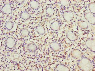 Immunohistochemistry of paraffin-embedded human colon tissue using CSB-PA613399LA01HU at dilution of 1:100