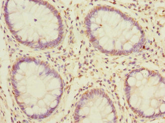 Immunohistochemistry of paraffin-embedded human colon cancer using CSB-PA896505DSR1HU at dilution of 1:100