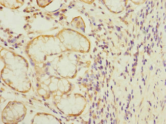 Immunohistochemistry of paraffin-embedded human gastric cancer using CSB-PA822201ESR1HU at dilution of 1:100