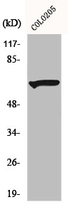 • Western Blot analysis of COLO205 cells using Myotubularin Polyclonal Antibody