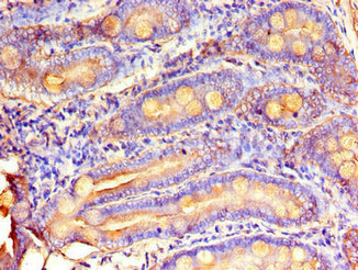 Immunohistochemistry of paraffin-embedded human small intestine tissue using CSB-PA015209LA01HU at dilution of 1:100