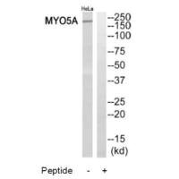 免疫原:Synthesized peptide derived from C-terminal of Human MYO5A.