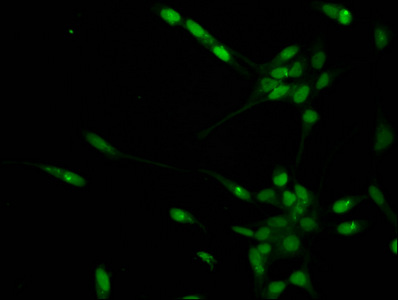 • Immunofluorescent analysis of Hela cells using CSB-PA010379PA16me1HU at dilution of 1:100 and Alexa Fluor 488-congugated AffiniPure Goat Anti-Rabbit IgG(H+L)