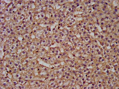 IHC image of CSB-PA885699LA01HU diluted at 1:200 and staining in paraffin-embedded human adrenal gland tissue performed on a Leica BondTM system. After dewaxing and hydration, antigen retrieval was mediated by high pressure in a citrate buffer (pH 6.0). Section was blocked with 10% normal goat serum 30min at RT. Then primary antibody (1% BSA) was incubated at 4°C overnight. The primary is detected by a biotinylated secondary antibody and visualized using an HRP conjugated SP system.