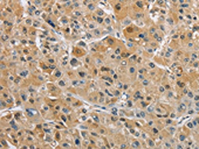 The image on the left is immunohistochemistry of paraffin-embedded Human liver cancer tissue using CSB-PA244536(NAPSA Antibody) at dilution 1/40, on the right is treated with fusion protein. (Original magnification: ×200)