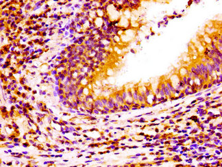 Immunohistochemistry of paraffin-embedded human lung cancer using CSB-PA015512LA01HU at dilution of 1:100