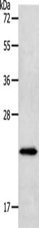 Gel: 12%SDS-PAGE, Lysate: 40 μg, Lane: Human liver cancer tissue, Primary antibody: CSB-PA100644(NEUROG1 Antibody) at dilution 1/400, Secondary antibody: Goat anti rabbit IgG at 1/8000 dilution, Exposure time: 1 minute