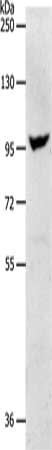 • Gel: 8%SDS-PAGE, Lysate: 40 μg, Lane: Human fetal brain tissue, Primary antibody: CSB-PA108395(NFATC2 Antibody) at dilution 1/650, Secondary antibody: Goat anti rabbit IgG at 1/8000 dilution, Exposure time: 10 minutes
