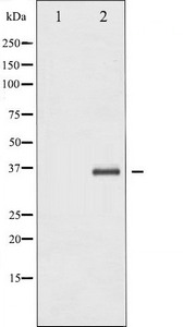 • Western blot analysis of IkappaB-beta expression in TNF treated NIH-3T3 whole cell lysates,The lane on the left is treated with the antigen-specific peptide.