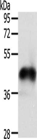 Gel: 12%SDS-PAGE, Lysate: 40 μg, Lane: PC3 cells, Primary antibody: CSB-PA439037(NFKBIE Antibody) at dilution 1/250, Secondary antibody: Goat anti rabbit IgG at 1/8000 dilution, Exposure time: 30 minutes