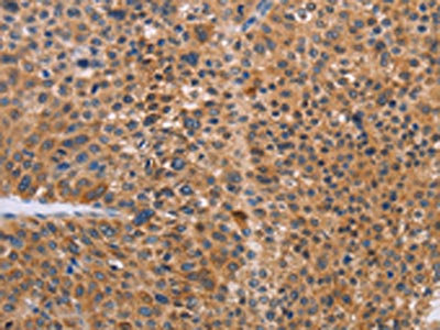 The image on the left is immunohistochemistry of paraffin-embedded Human liver cancer tissue using CSB-PA061258(NIF3L1 Antibody) at dilution 1/30, on the right is treated with fusion protein. (Original magnification: ×200)
