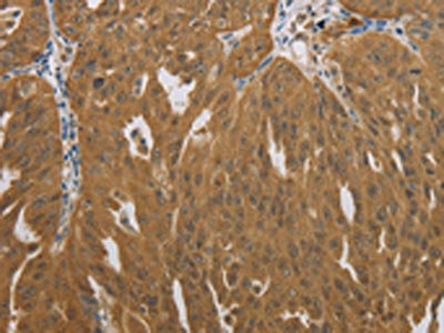 • The image on the left is immunohistochemistry of paraffin-embedded Human ovarian cancer tissue using CSB-PA187627(NIT2 Antibody) at dilution 1/40, on the right is treated with synthetic peptide. (Original magnification: ×200)