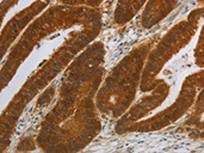 • The image on the left is immunohistochemistry of paraffin-embedded Human colon cancer tissue using CSB-PA187627(NIT2 Antibody) at dilution 1/40, on the right is treated with synthetic peptide. (Original magnification: ×200)
