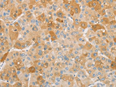 • The image on the left is immunohistochemistry of paraffin-embedded Human liver cancer tissue using CSB-PA576064(NPPB Antibody) at dilution 1/30, on the right is treated with fusion protein. (Original magnification: ×200)