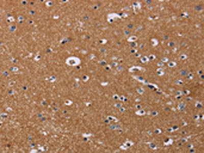 • The image on the left is immunohistochemistry of paraffin-embedded Human brain tissue using CSB-PA052500(NRAS Antibody) at dilution 1/30, on the right is treated with synthetic peptide. (Original magnification: ×200)