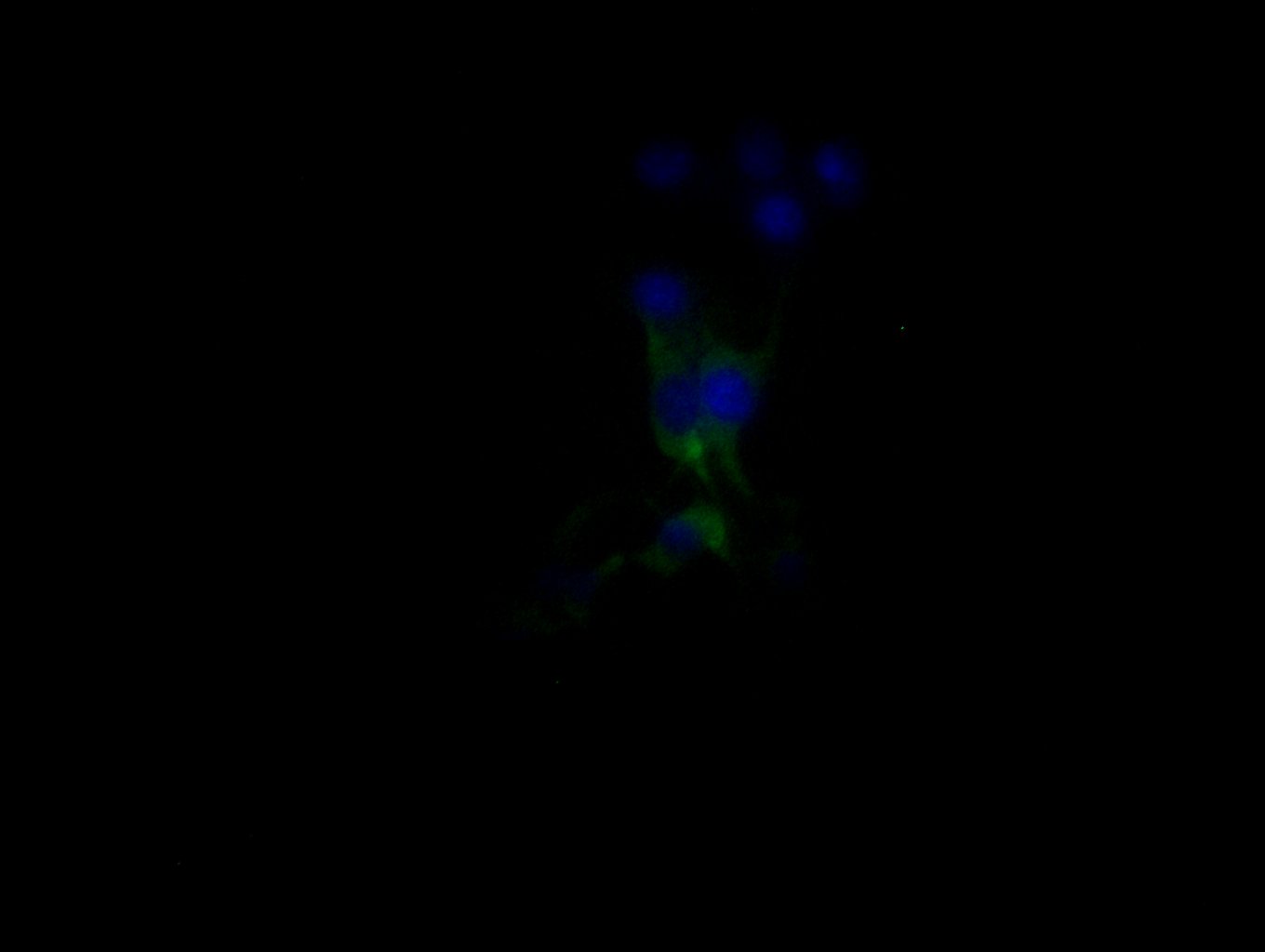 • Immunofluorescent analysis of 3T3 cells using CSB-PA016133LA01HU at dilution of 1:100 and Alexa Fluor 488-congugated AffiniPure Goat Anti-Rabbit IgG(H+L)
