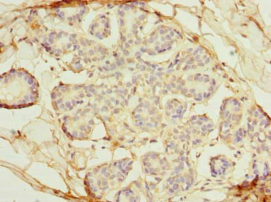 Immunohistochemistry of paraffin-embedded human breast cancer using CSB-PA897460LA01HU at dilution of 1:100