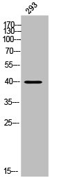 • Western Blot analysis of 293 cells using mPRα Polyclonal Antibody