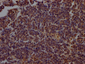 • IHC image of CSB-PA017457LA01HU diluted at 1:200 and staining in paraffin-embedded human lung cancer performed on a Leica BondTM system. After dewaxing and hydration, antigen retrieval was mediated by high pressure in a citrate buffer (pH 6.0). Section was blocked with 10% normal goat serum 30min at RT. Then primary antibody (1% BSA) was incubated at 4°C overnight. The primary is detected by a Goat anti-rabbit polymer IgG labeled by HRP and visualized using 0.05% DAB.