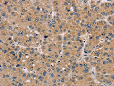 • The image on the left is immunohistochemistry of paraffin-embedded Human liver cancer tissue using CSB-PA148428(PARP3 Antibody) at dilution 1/25, on the right is treated with fusion protein. (Original magnification: ×200)