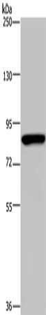 Gel: 6%SDS-PAGE, Lysate: 40 μg, Lane: Hela cells, Primary antibody: CSB-PA232889(PARP8 Antibody) at dilution 1/200, Secondary antibody: Goat anti rabbit IgG at 1/8000 dilution, Exposure time: 3 minutes