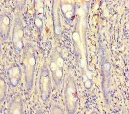 • Immunohistochemistry of paraffin-embedded human small intestine tissue using CSB-PA017603LA01HU at dilution of 1:100