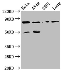 Positive WB detected in: Hela whole cell lysate, A549 whole cell lysate, U251 whole cell lysate, Mouse lung tissue