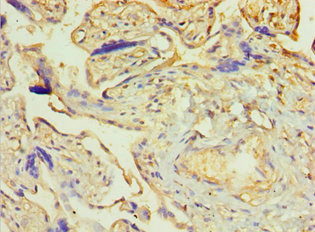 Immunohistochemistry of paraffin-embedded human placenta tissue using CSB-PA017731ESR1HU at dilution of 1:100