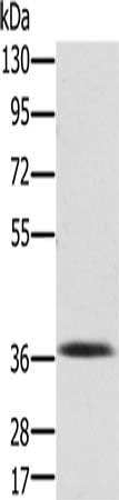 Gel: 8%SDS-PAGE, Lysate: 40 μg, Lane: Mouse liver tissue, Primary antibody: CSB-PA137424(PDLIM2 Antibody) at dilution 1/250, Secondary antibody: Goat anti rabbit IgG at 1/8000 dilution, Exposure time: 3 minutes