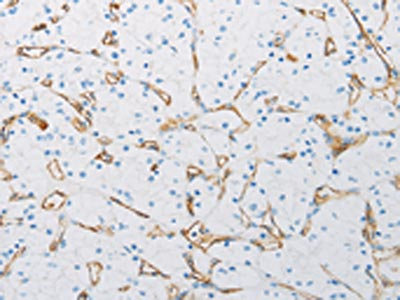 The image on the left is immunohistochemistry of paraffin-embedded Human renal cancer tissue using CSB-PA022257(PECAM1 Antibody) at dilution 1/25, on the right is treated with synthetic peptide. (Original magnification: ×200)
