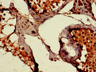 Immunohistochemistry of paraffin-embedded human testis tissue using CSB-PA017784LA01HU at dilution of 1:100