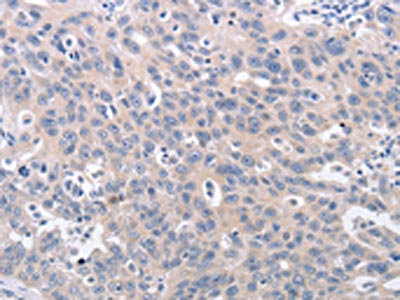 The image on the left is immunohistochemistry of paraffin-embedded Human ovarian cancer tissue using CSB-PA078303(PFN4 Antibody) at dilution 1/20, on the right is treated with fusion protein. (Original magnification: ×200)
