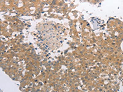 Gel: 10%SDS-PAGE, Lysate: 60 μg, Lane: Human liver cancer tissue, Primary antibody: CSB-PA054080(PGA3/PGA4/PGA5 Antibody) at dilution 1/700, Secondary antibody: Goat anti rabbit IgG at 1/8000 dilution, Exposure time: 1 minute