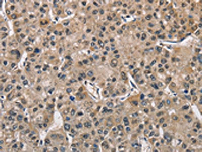 • The image on the left is immunohistochemistry of paraffin-embedded Human liver cancer tissue using CSB-PA547426(PGK1 Antibody) at dilution 1/40, on the right is treated with fusion protein. (Original magnification: ×200)