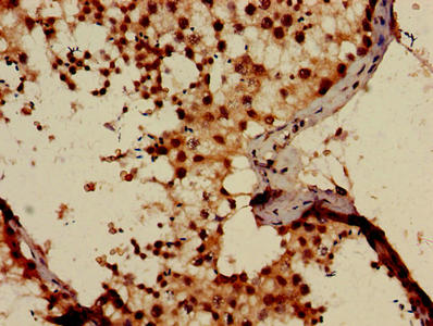 Immunohistochemistry of paraffin-embedded human testis tissue using CSB-PA017866HA01HU at dilution of 1:100