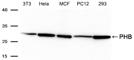 免疫原:Peptide sequence around aa.256~260 (N-I-T-Y-L) derived from Human PHB.