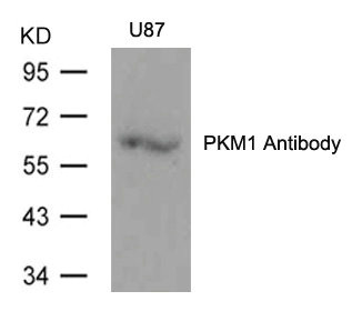• Western blot analysis of extracts from U87 cells using PKM1 Antibody.