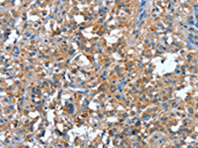 • The image on the left is immunohistochemistry of paraffin-embedded Human gastric cancer tissue using CSB-PA202119(PLA2G6 Antibody) at dilution 1/15, on the right is treated with synthetic peptide. (Original magnification: ×200)