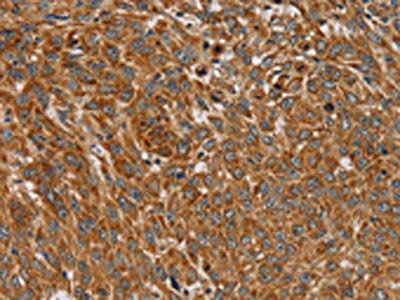 The image on the left is immunohistochemistry of paraffin-embedded Human cervical cancer tissue using CSB-PA587894(PLEKHG6 Antibody) at dilution 1/45, on the right is treated with fusion protein. (Original magnification: ×200)